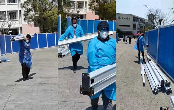 陆龙宝、黄鸽两位非党员同志也彰显忠诚与担当品质,投入到“物防”工作中。两位年龄相加超过110岁的同志,日常工作就很热心,在这项紧急任务中也是主动作为、出谋划策,上下连联动、群防群控,像一颗“陀螺”般在搬运、安装、修补隔离段等不同工作间连轴转。历经三天,五十多个小时,数不清的奔波、数不清的搬运、数不清的安装,各片区主要硬隔离基本完成,为学校网格化管理打下了坚实的物理空间基础。