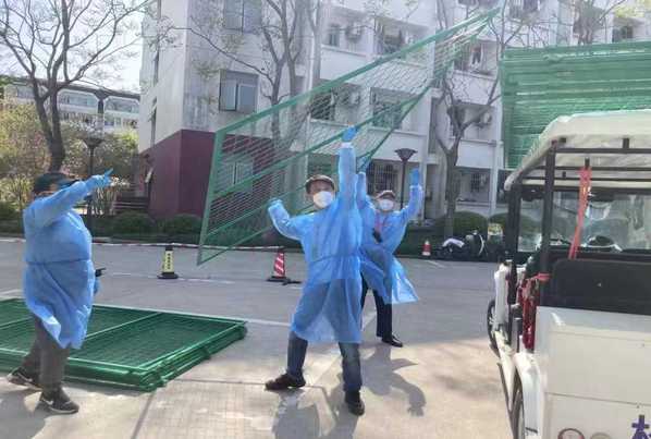 3月30日,为配合校园疫情防控转段管理,在闵行校区疫情防控转班的领导下,保卫处制订了《闵行校区封闭管理期间第二阶段校园网络化管理方案》。根据方案要求,闵行校区要网格化为四大片区,而本科生公寓片区和研究生公寓片区要用绿篱、围挡分为六小片区。面对任务陌生,时间紧急,在校区值守奋战的党员骨干们针对这个“大工程”组建了“党员突击队”,和基建处支部线上商议施工方案,并一头扎进近2500米的隔离段紧急搭建工作。