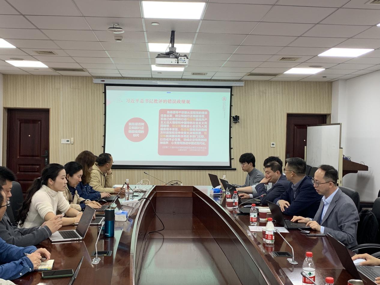 在交流研讨环节,支部党员结合自身岗位职责,就科研项目申报、经费管理、成果转化、服务院系等工作中如何防范政绩观偏差、强化实干担当展开讨论。